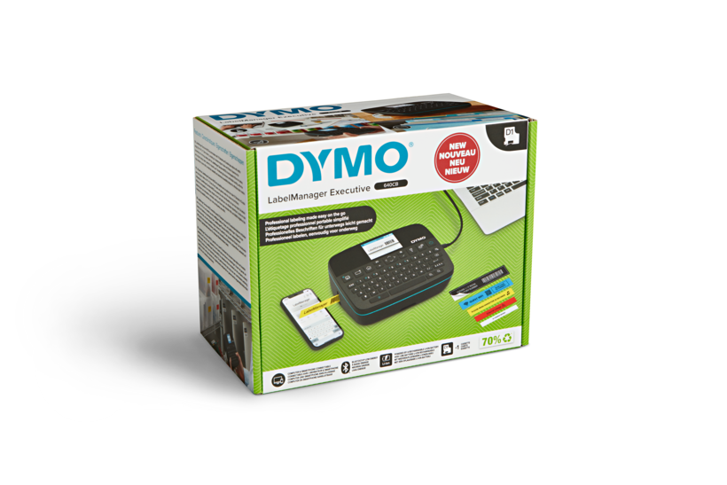 Experience the convenience of labeling on the go with the DYMO® LabelManager Executive 640CB! Whether you're organizing at your workplace or on the go, this label printer offers unmatched efficiency and precision when creating labels! The LabelManager Executive 640CB features a rechargeable lithium-ion battery and a large, high-resolution color display. It is comfortable to hold thanks to its textured handle. The LabelManager is compatible with standard and durable DYMO® D1 tapes, with widths ranging from 6 to 24 mm in various colors and finishes.